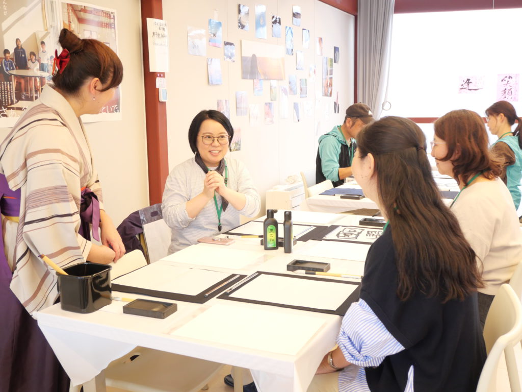 小高区は2016年に避難指示が解除され、現在では若者が新しい挑戦をする場として活気が戻っています。その拠点でもあるパイオニアヴィレッジで、千葉清藍さんの書道体験ワークショップが行われました。