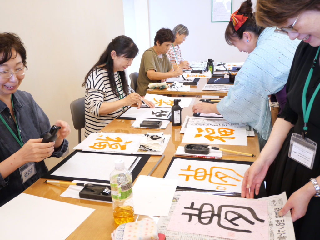 また、千葉清藍さんのワークショップでは、福島県産の果樹の皮などを使った和紙に、その日感じたことを無心で書にしたためて、一日の締めくくりとして心が落ち着く時間を過ごしました。