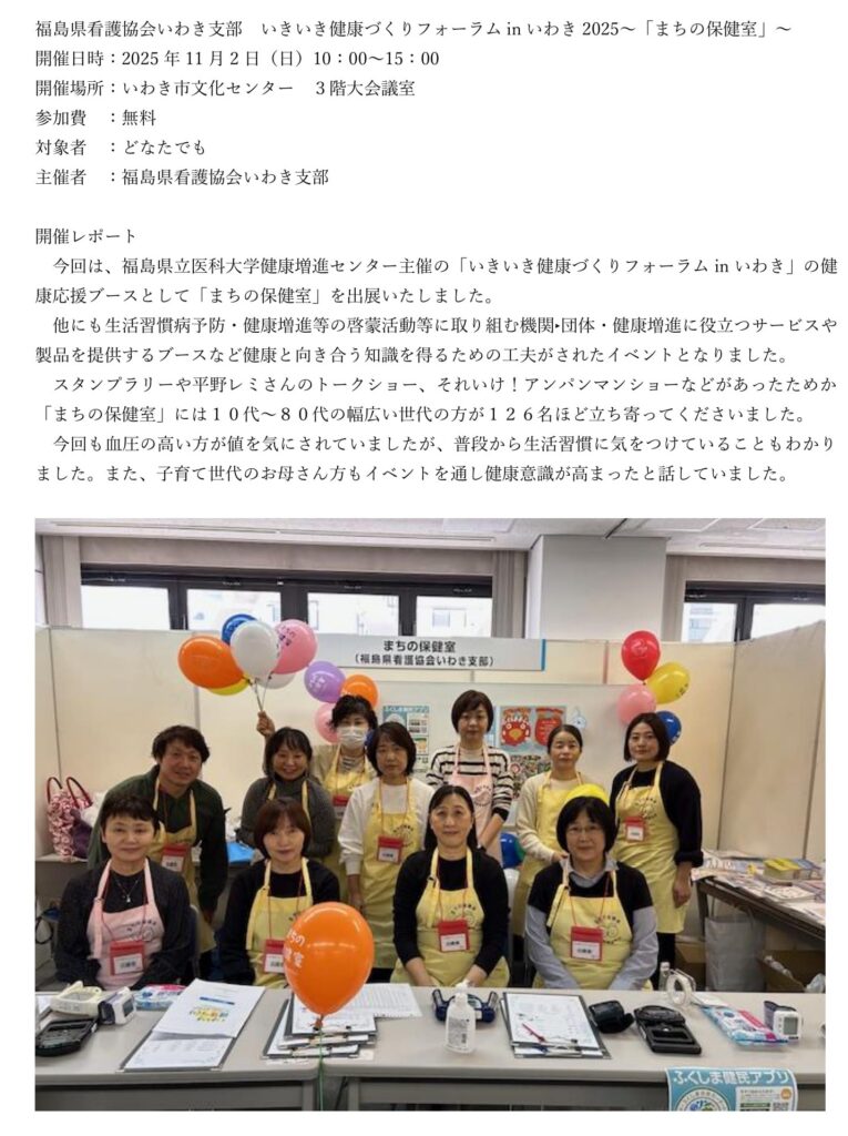 いわき市 【まちの保健室】 (いきいき健康づくりフォーラムinいわき内)