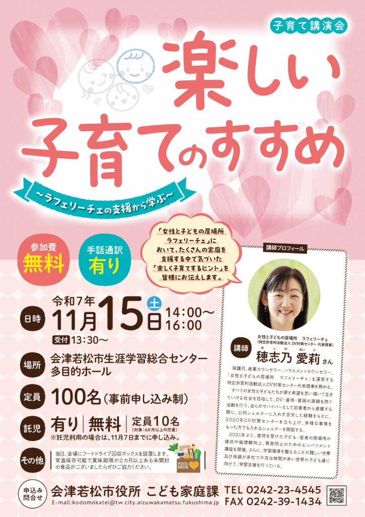 子育て講演会【楽しい子育てのすすめ~ラフェリーチェの支援から学ぶ~】 (会津若松市)