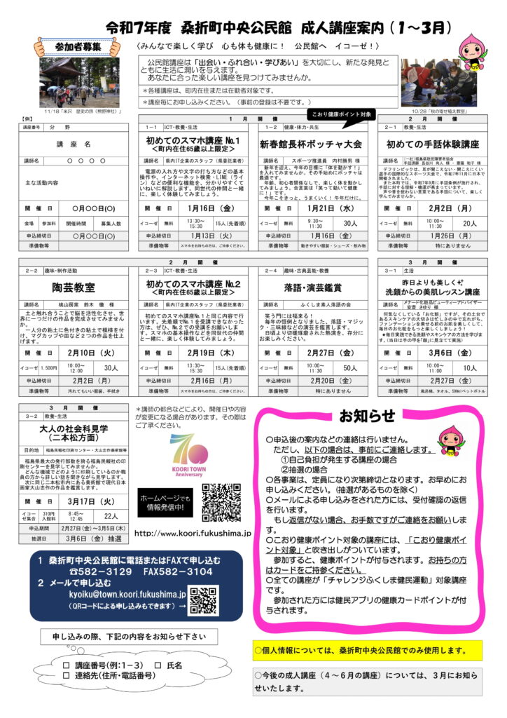 【 開 催 場 所 】 桑折町屋内温水プール・多目的スタジオ「イコーゼ!」