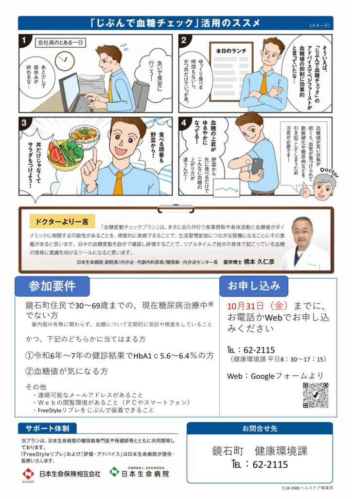 【鏡石町】日本生命保険相互会社サポート事業「じぶんで血糖チェック」全4回