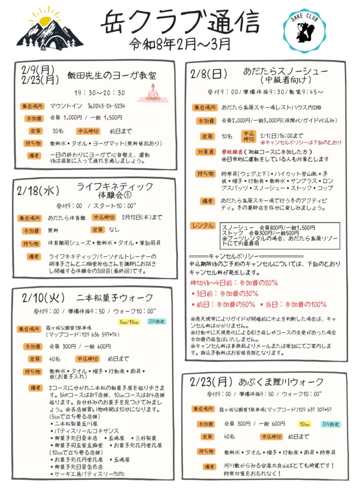 【 主 催 者 】 総合型地域スポーツクラブ 岳クラブ(岳温泉観光協会内)
