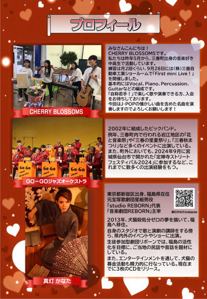 町内で活動するCHERRY BLOSSOMSとGO-GOジャズオーケストラが元宝塚歌劇団の真灯かなたさんと共演。