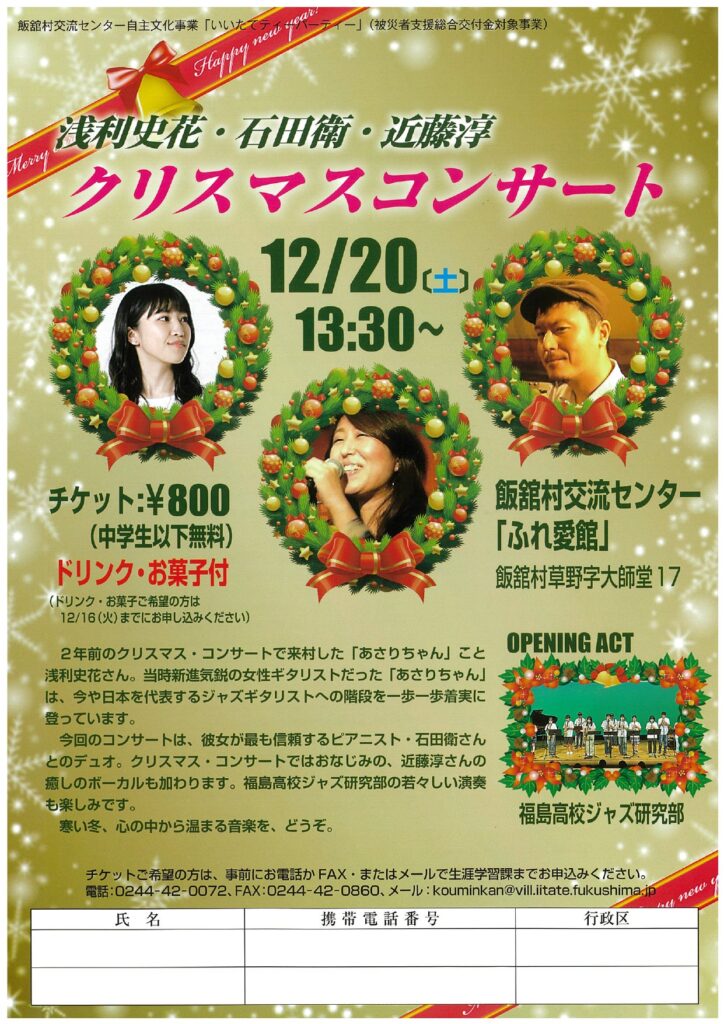 クリスマス・コンサートではおなじみの、近藤淳さんの癒しのボーカルや、福島高校ジャズ研究部の若々しい演奏も、ぜひお楽しみください。