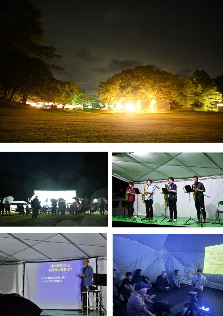 マルシェやアウトドア体験などが行われ、夜は雨が降る中ではありましたが、会津美里町出身の山浦雅也さんとQuatuor B(クアチュール・ベー)の皆さんによるスターライトコンサート、国立天文台上席教授の渡部潤一先生による星空講演会が実施されました。