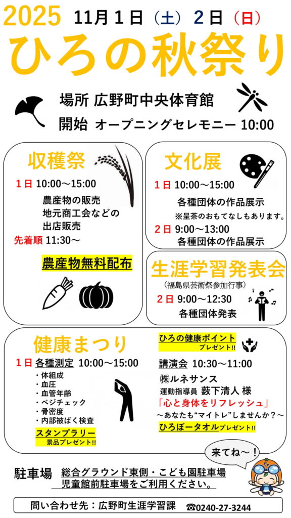 ひろの秋祭りと同時開催していますので、ぜひお立ち寄りください。