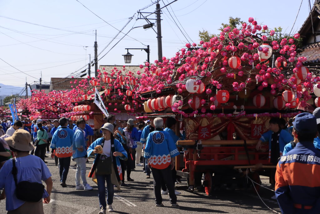 山車フェスでは町内に現存する山車13台が勢揃い。旧伊達郡役所から桑折町役場までの約2kmをイベント来場者とともに練り歩きました。