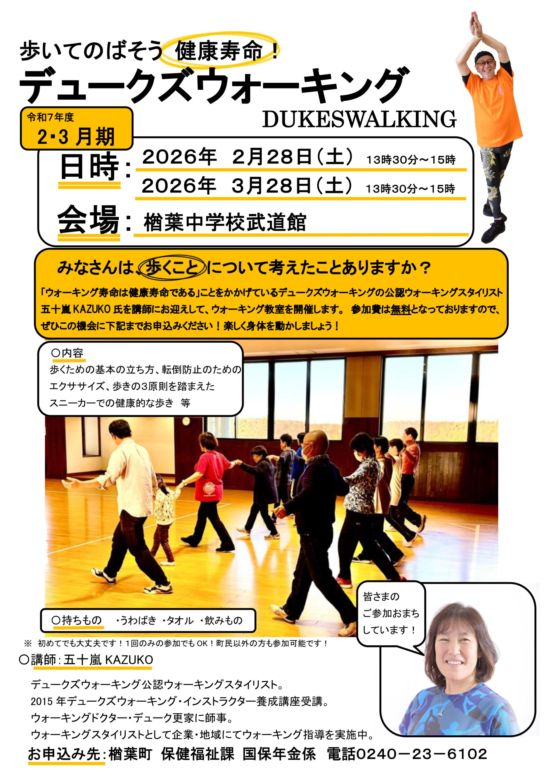デュークズウォーキングの公認ウォーキングスタイリストである五十嵐KAZUKO先生による、ウォーキング教室を開催します。