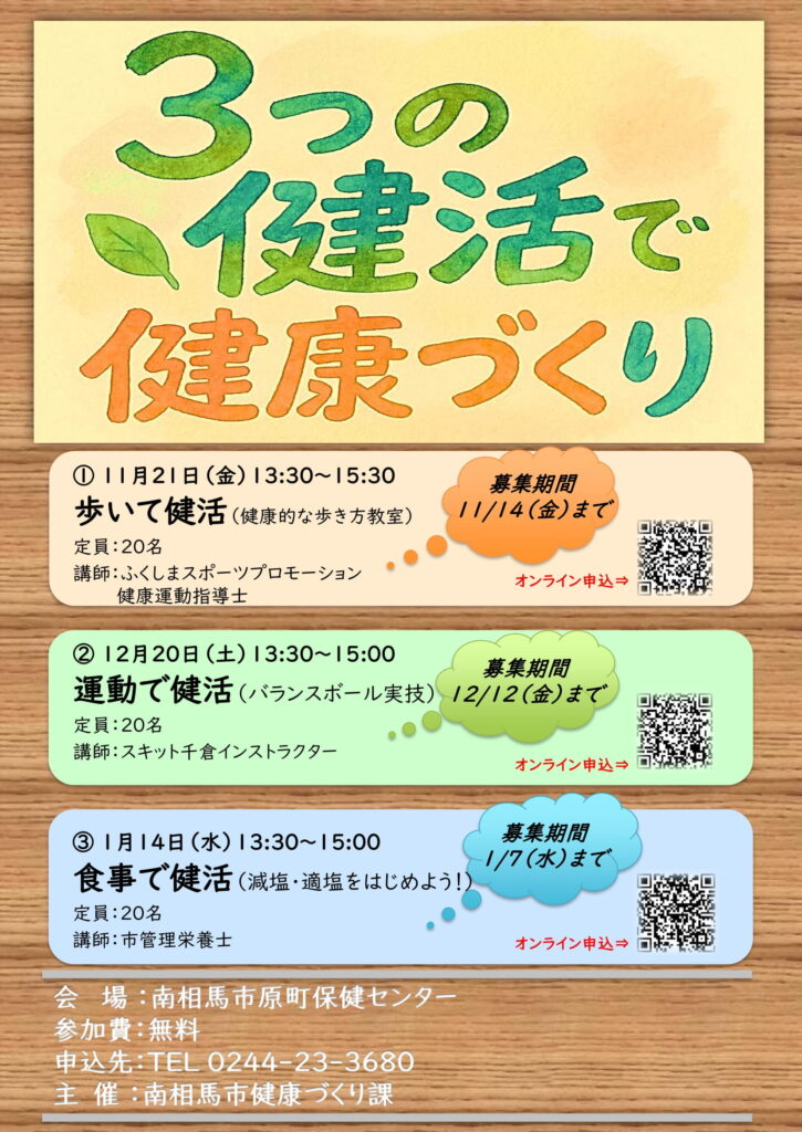 南相馬市では、普段の生活に取り入れやすく、健康づくりのきっかけとなる運動や栄養に関する教室を開催します。