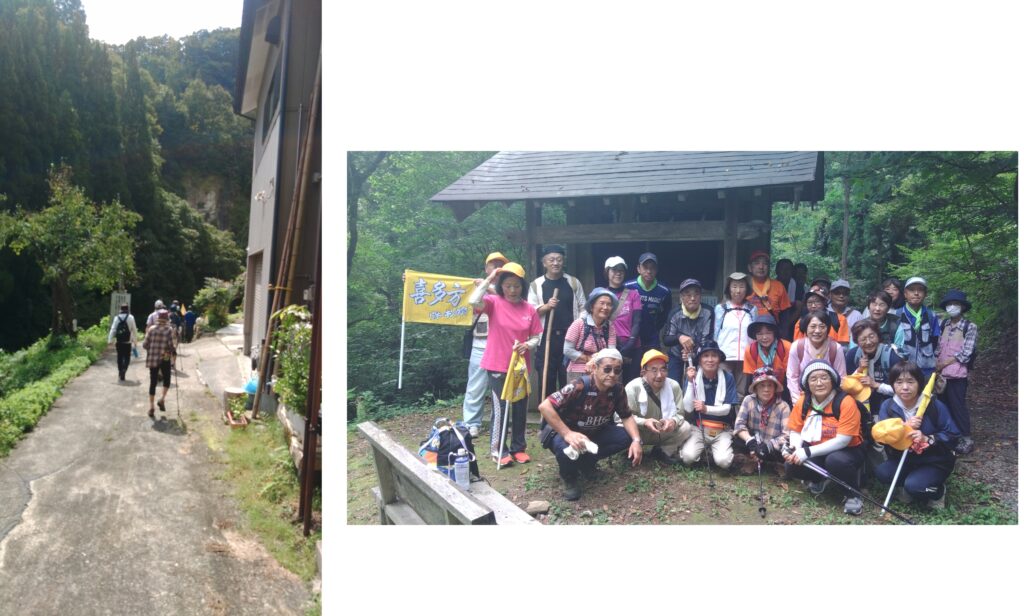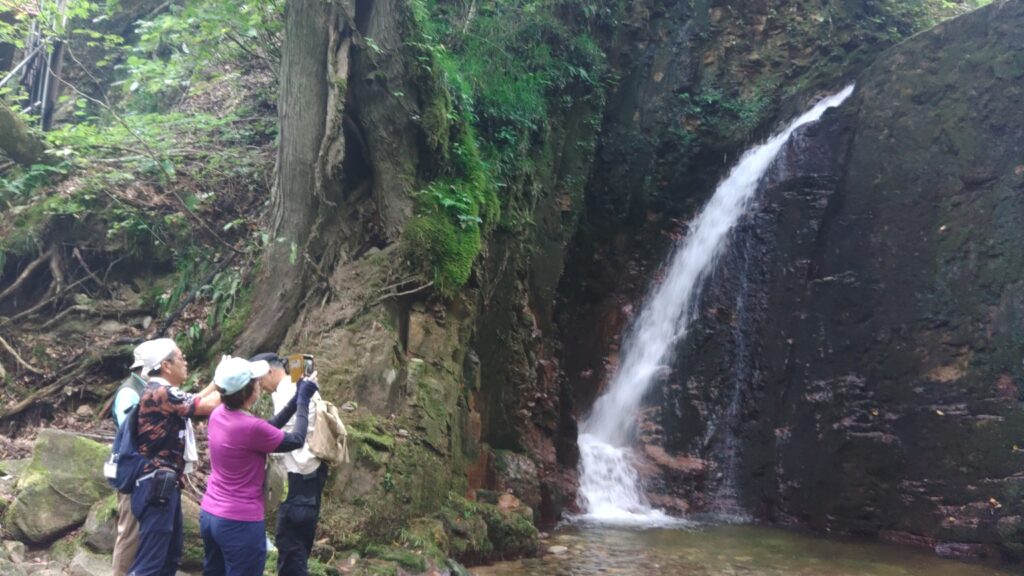 弥作の滝に到着し集合写真や休憩を取り、緩やかな下り坂を下り駐車場にゴール出来ました。