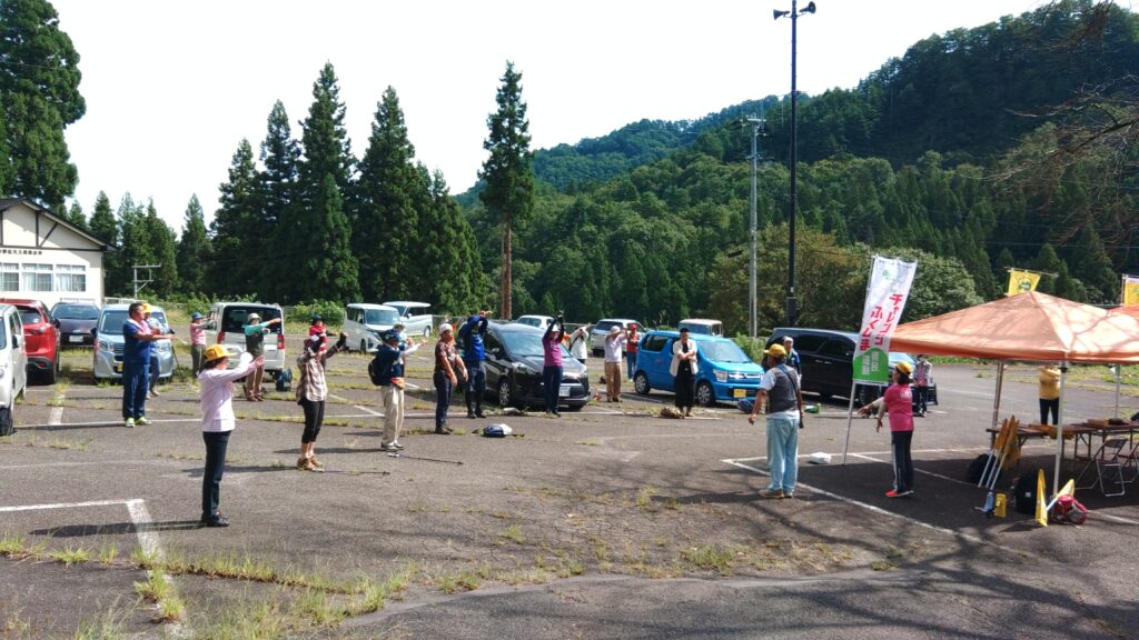 集合場所の大山祇神社西会津町駐車場には45人の方が集合していました。
