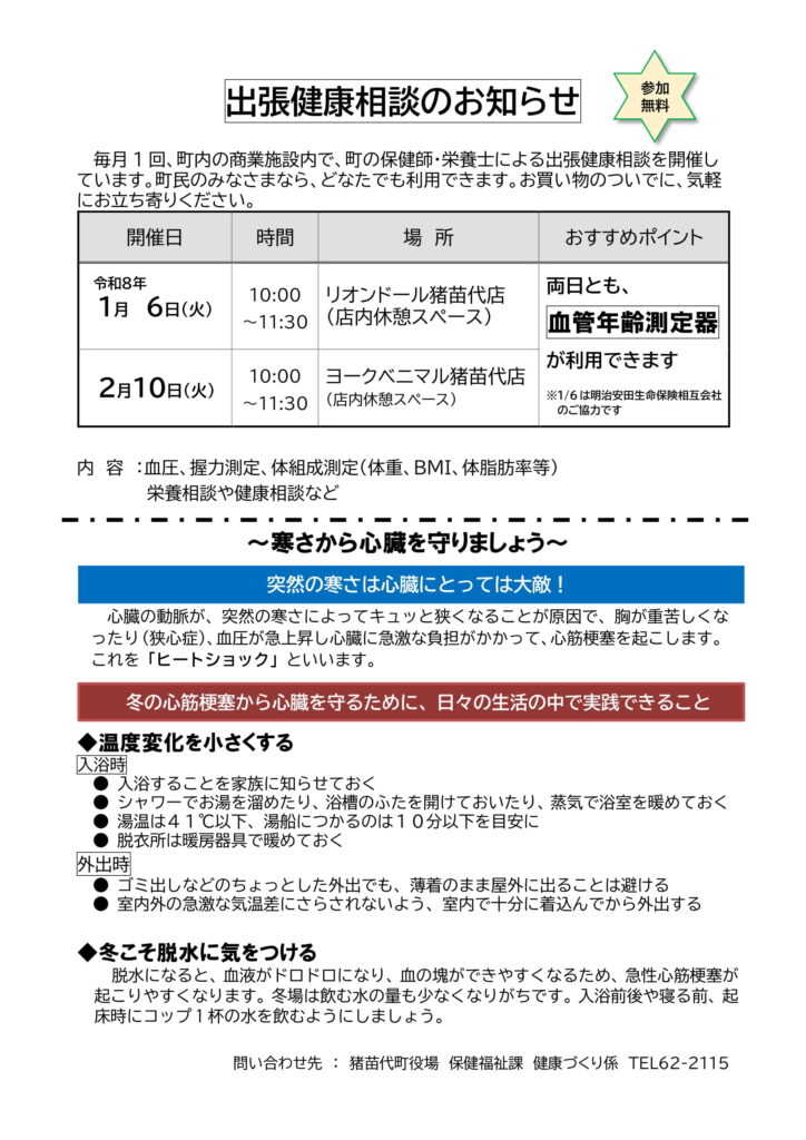 猪苗代町 出張健康相談 (令和8年1月開催)