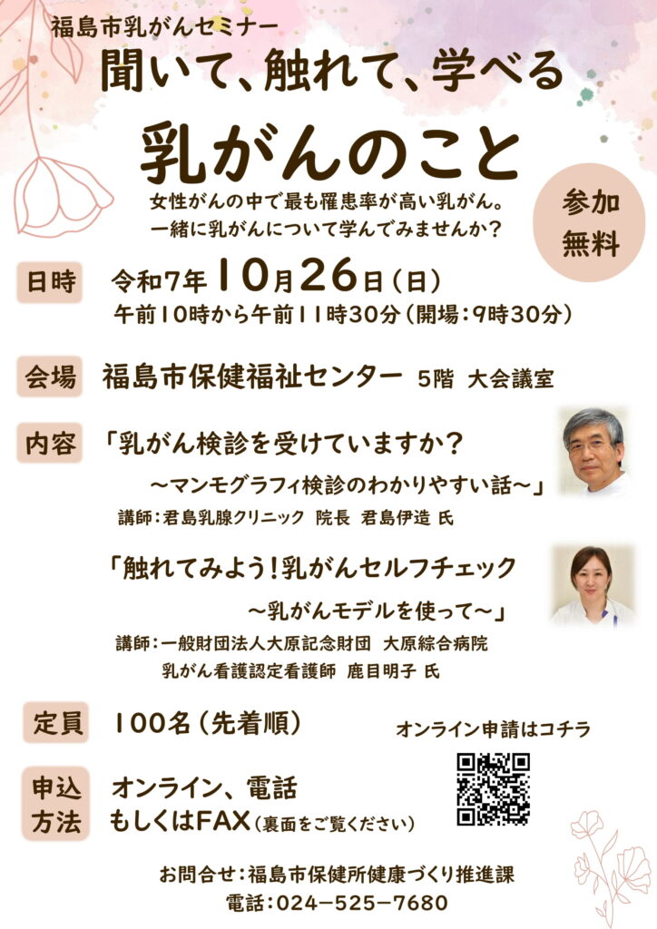 福島市乳がんセミナー ~聞いて、触れて、学べる 乳がんのこと~