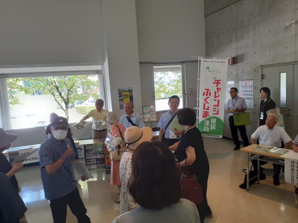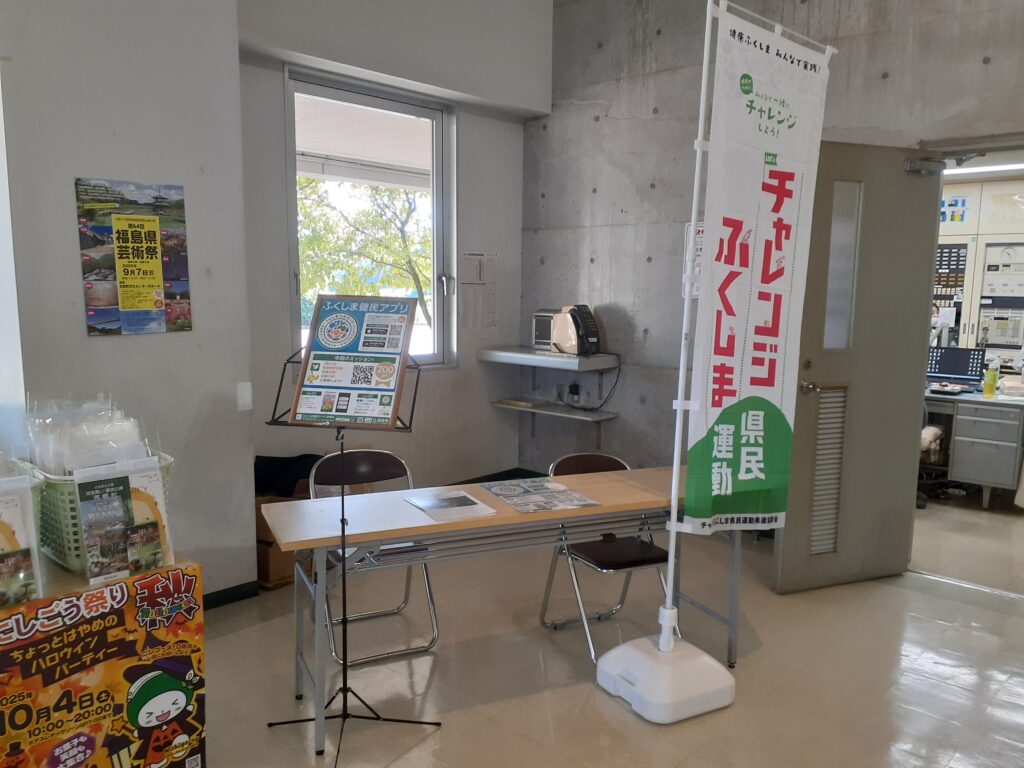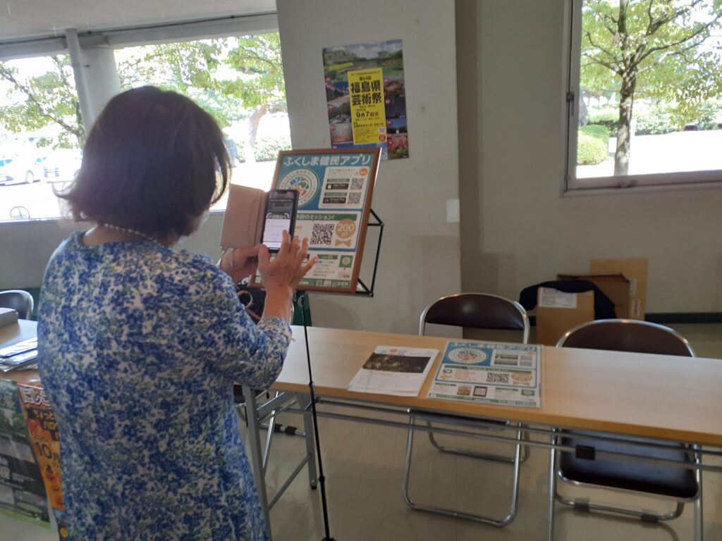 幾人かのお客様はスマホをかざしていましたが、私たちも受付業務を行いながらチャレンジふくしま県民運動のご案内をさせていただきました。