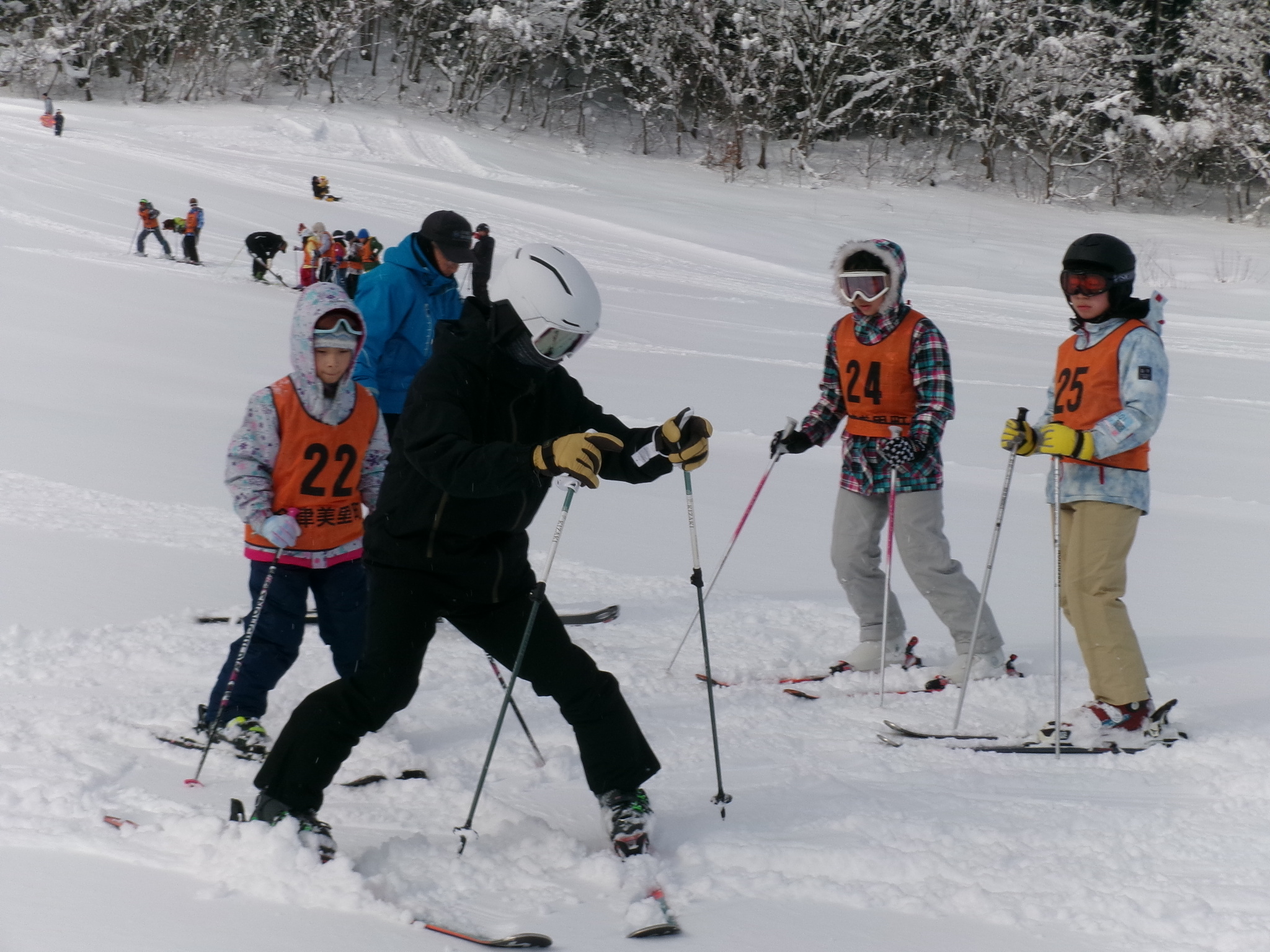 1月25日(日)小山スキー場で行われた町民スキー・スノーボード教室では、天気にも恵まれ、25名の参加者がスキークラブの講師の方々に熱心に受講していました。