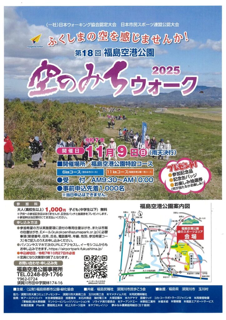 福島空港と紅葉を満喫できるウォーキング大会を空港公園特設コ一ス(11km・6km)で開催します。