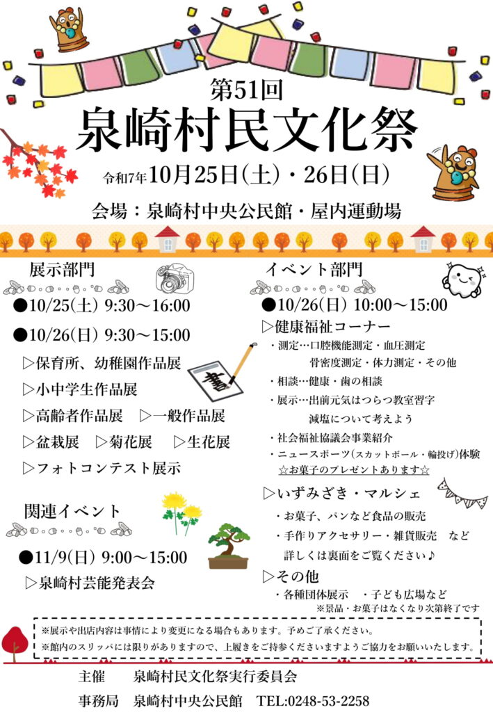 泉崎村では、「第51回泉崎村民文化祭」を開催いたします。
