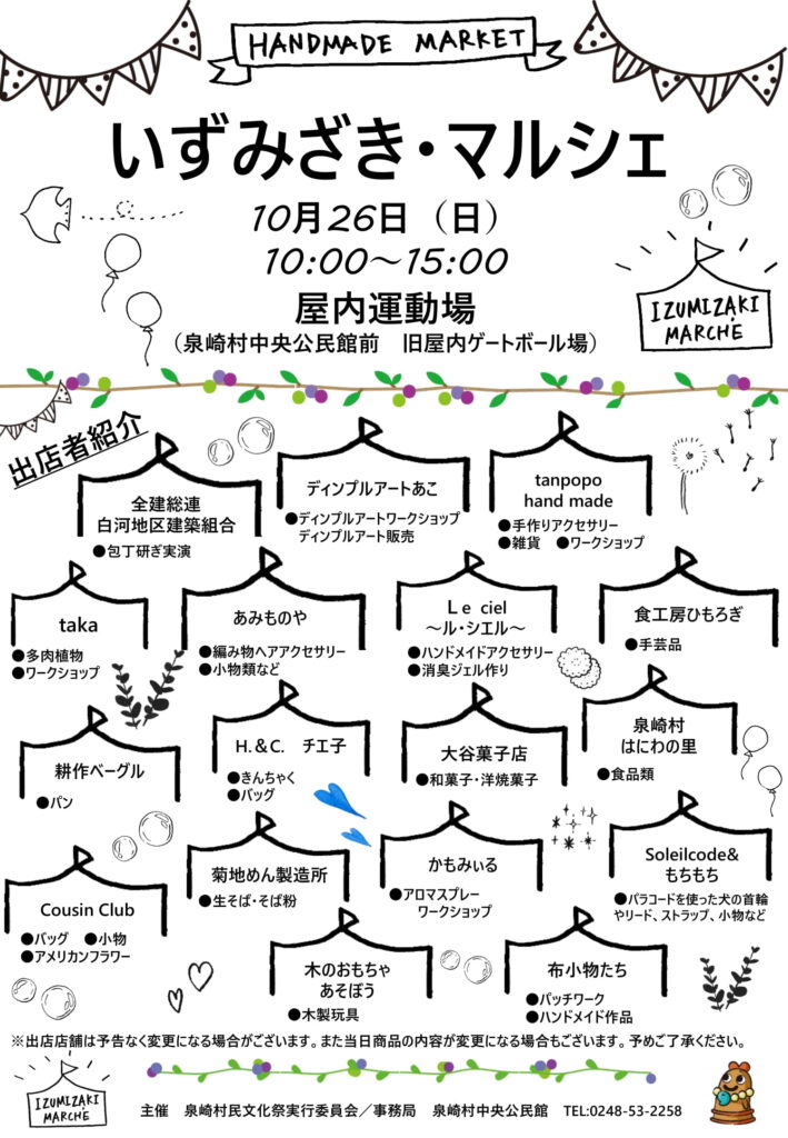 また、村民文化祭(10月25日~26日)では作品の展示、いずみざき・マルシェ(10月26日)も同時開催します。