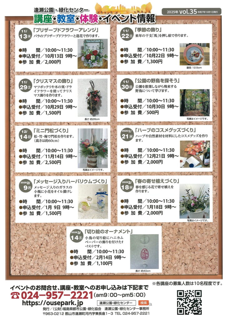 【 主 催 者 】 (公財)福島県都市公園・緑化協会 逢瀬公園・緑化センター