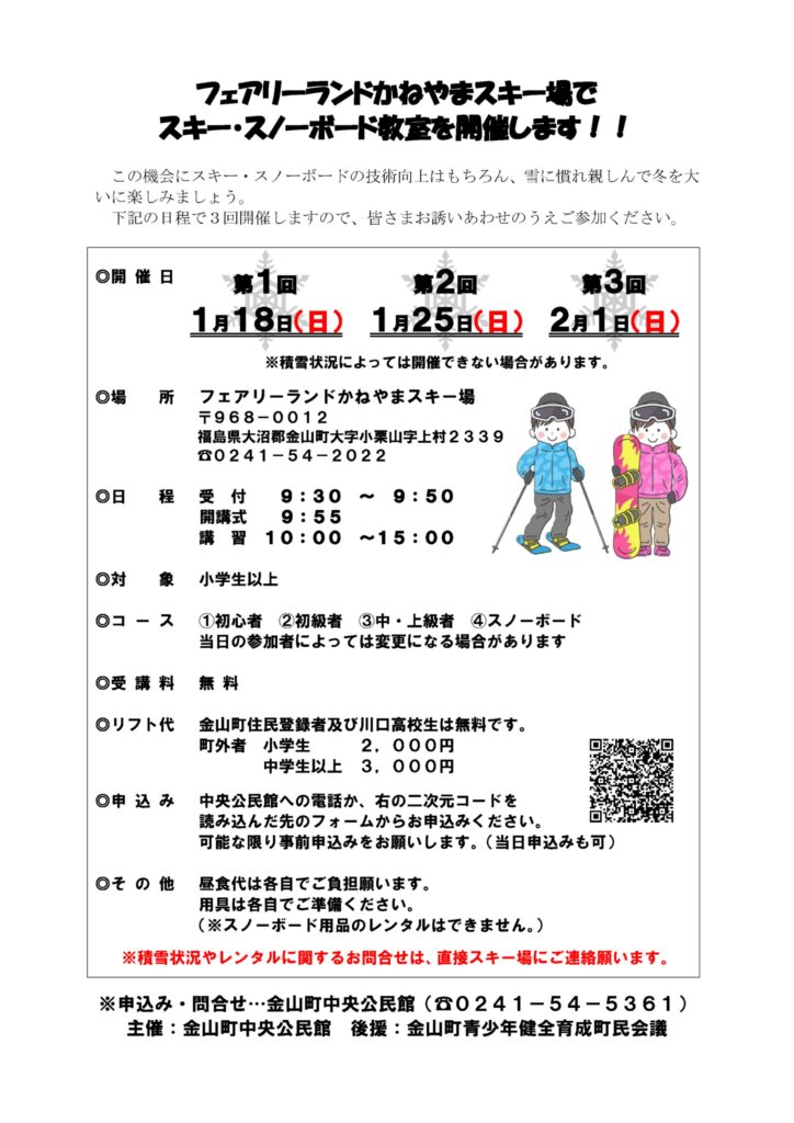 フェアリーランドかねやまスキー場で、スキー・スノーボードの技術向上はもちろん、雪に慣れ親しんで冬を大いに楽しみましょう。