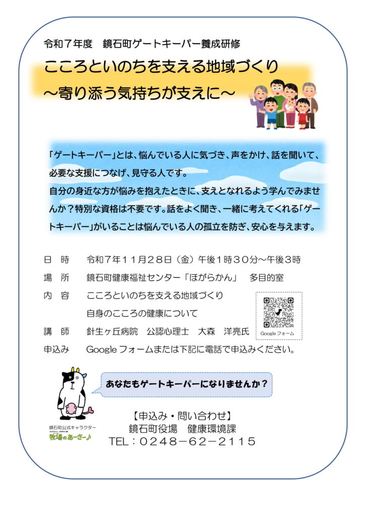 鏡石町ゲートキーパー養成研修「こころといのちを支える地域づくり」