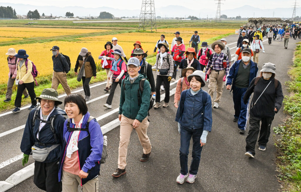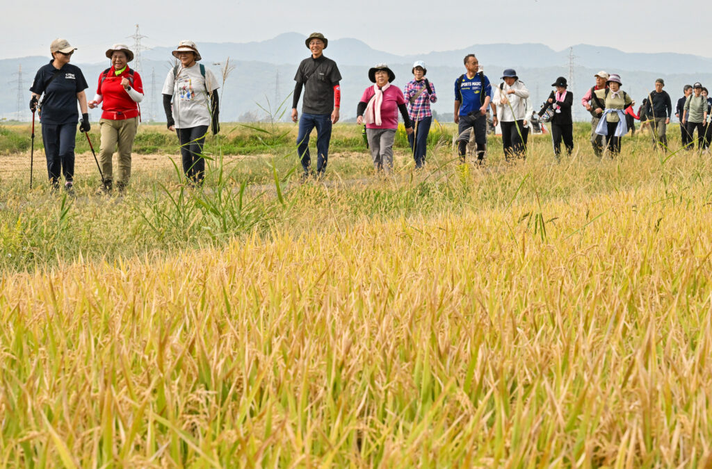 実りの季節を迎えた会津路を歩く「2025あいづ新米ウオーク」は10月18日、湯川村の道の駅あいづ湯川・会津坂下の多目的広場を発着点に行われた。