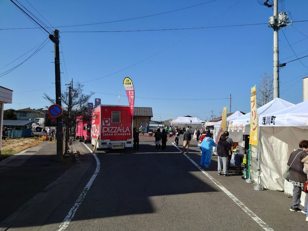 水郡線磐城浅川駅の広場と駐車場、それから駅から続く駅前通りの直線を歩行者天国とし、ショップと