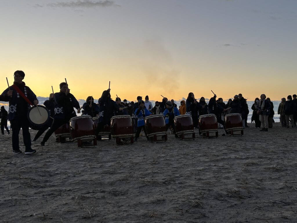 請戸海岸では約500人の方々が、家内安全、無病息災等々それぞれの思いを願いました。