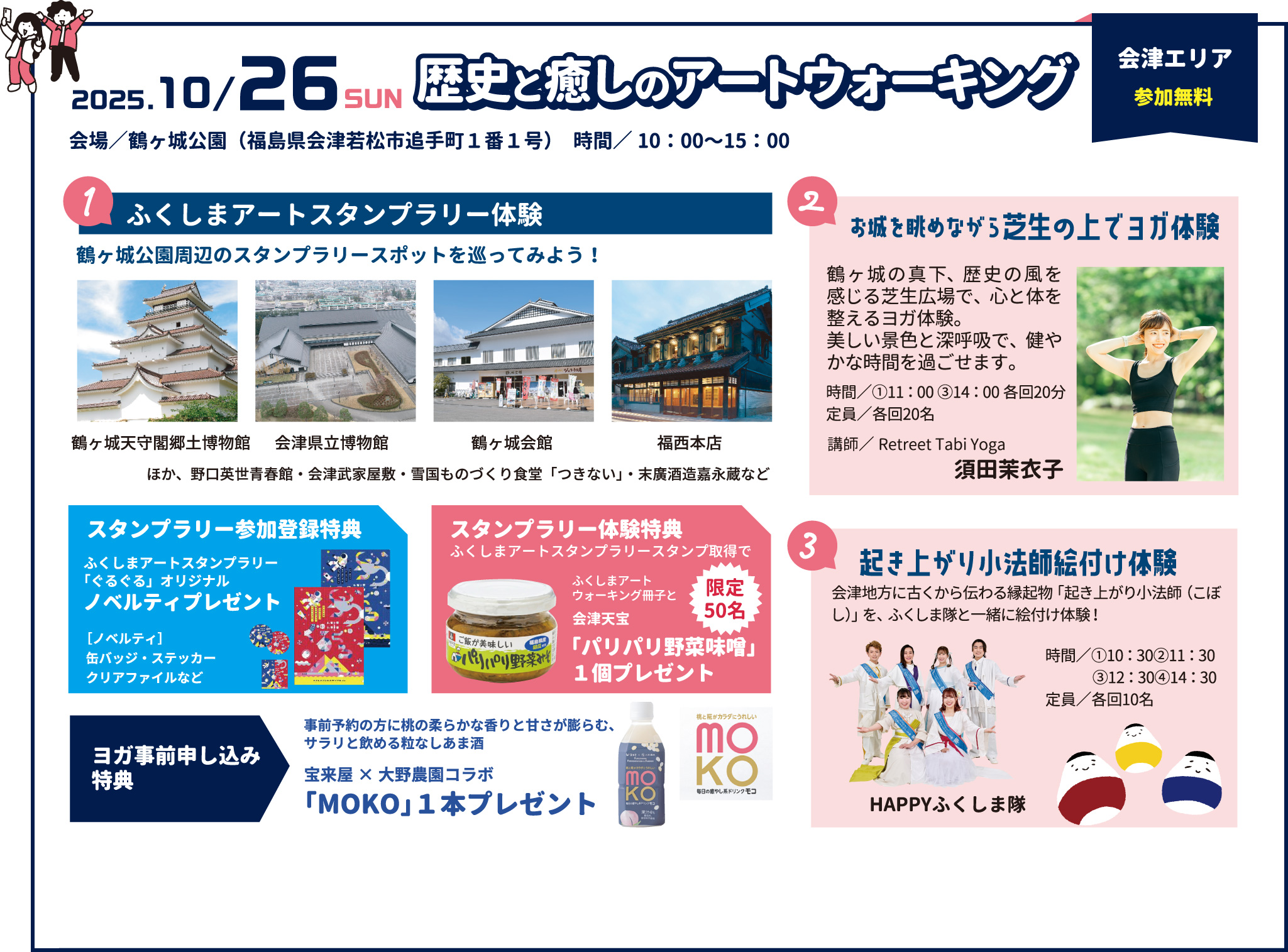 主催/チャレンジふくしま県民運動推進協議会 お問い合わせ/ふくしまアートウォーキング事務局(株式会社ル・プロジェ) fukushimaartwalking@gmail.com
